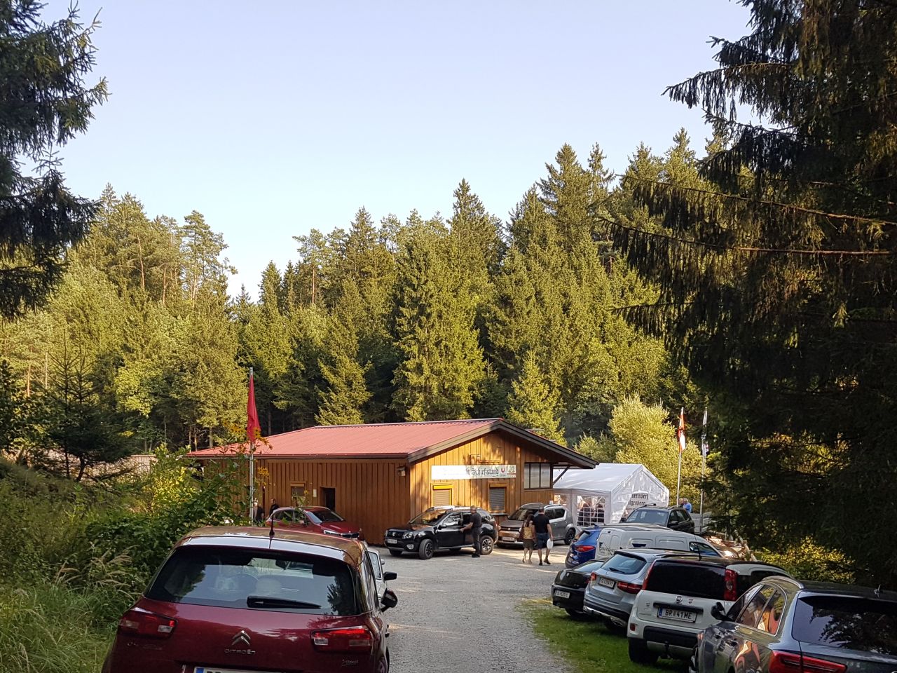 Es ist schon eher dunkel im Weilhartsforst beim Abschied. Georg zeigt uns noch den Schießstand und seine Möglichkeiten, erklärt uns die eine oder andere Besonderheit und wir freuen uns über das Dabeisein bei einem besonderen Fest.