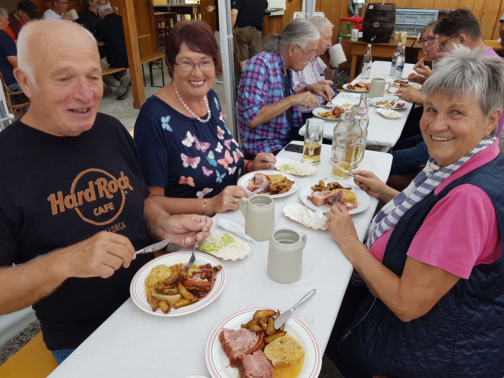 Ein oder zwei Krügerl später kommt dann Extrazartes von der Kistensau mit g’schmackigen Salat dazu. Die zahlreichen Gäste – Schützen, Nachbarn, Freunde, Segler lassen es sich gut gehen. Später gibt’s auch noch Süßes und Kaffee.