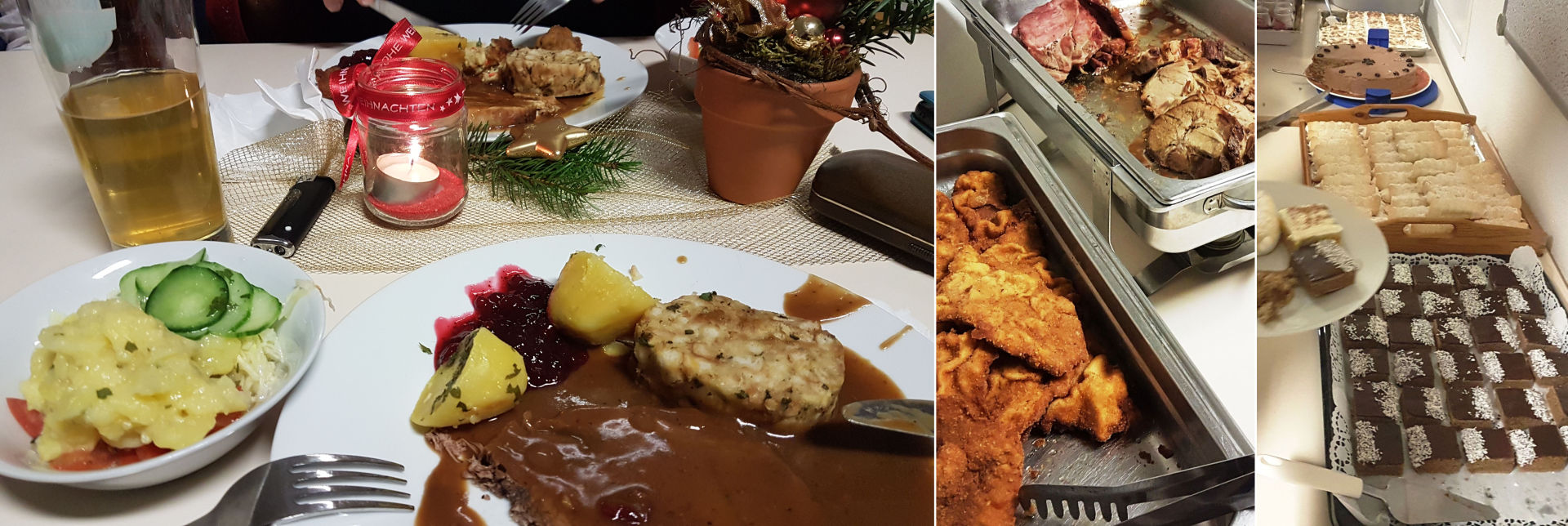 Schnitzel, Schweinsbraten, Rinderbraten, gebackene Champignons, Gemüselaibchen, Kartoffel, Saucen, Salate und ausreichend Süßspeisen aus eigener Produktion einiger Clubfrauen. Dazu natürlich ein nettes Getränkeangebot von der Sporthausschänke – flott serviert.