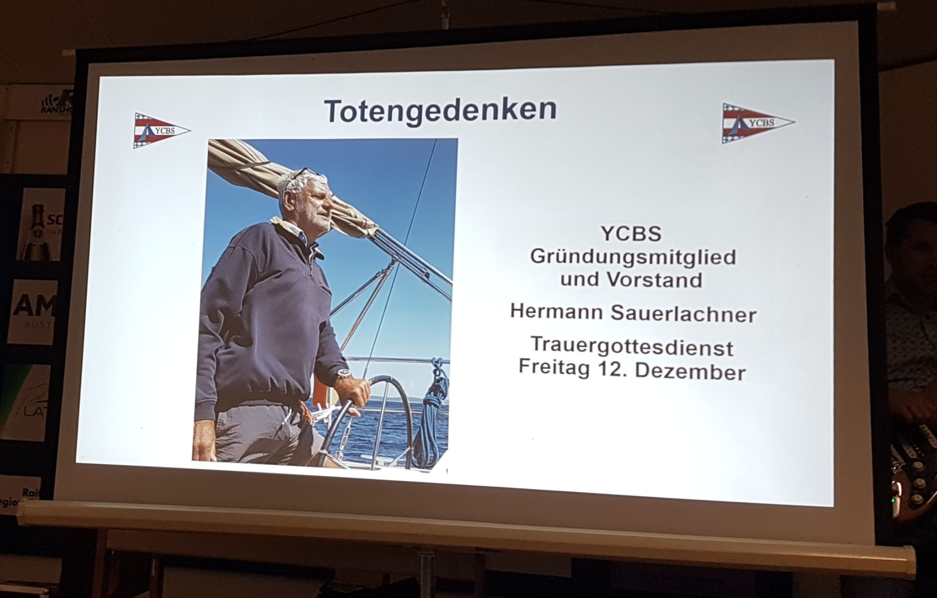 Abschließend einen herzlichen Dank dem YCBS und allen Akteuren für die wiederum gelungene Feier: den Organisatoren – speziell an Gerhard Schmidhuber, der die noch von Hermann Sauerlachner begonnenen ersten Arbeiten fortführte und erfolgreich erledigte, an Commodore Christian Haidinger für die Führung durch den Abend mit den gebeamten Informationen, an Ferdinand Brandstätter für die Vorarbeiten und die Präsentation des Fotowettbewerbes, an die YCBS-Musiker, an die Buffetlieferanten, an die Saalbedienung, ganz besonders natürlich an Klaus Ranzenberger für die wunderbaren Geschichten und Josef Killi für die klangvolle musikalische Umrahmung, last but not least den lustigen YCBS-Mitgliedern für den gemeinsamen Feierabend. Demnächst allen fröhliche Weihnachten!
