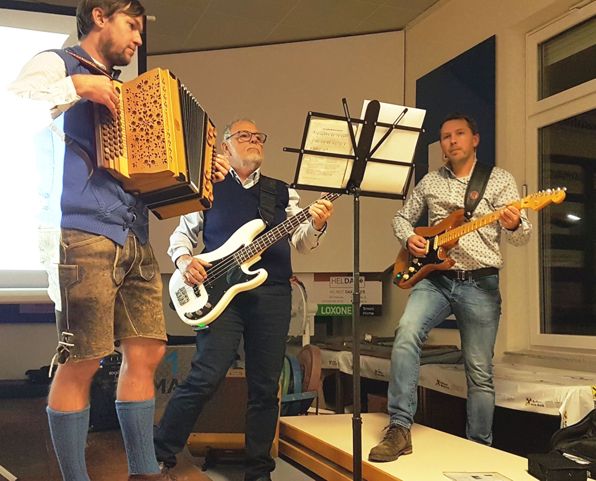 Zum adventlichen Abschluss der YCBS-Weihnachtsfeier 2025 kamen die drei clubinternen Musiker noch einmal zum Einsatz. Da erklang der Andachtsjodler, da wurde es „Scho glei dumpa“, obwohl es draußen ohnehin schon lange stockdunkel war, da durfte die lustige Besucherschar noch einmal mit schon leicht geölten Kehlen mitsingen oder zumindest mitsummen – weihnachtlich eben schon ein wenig.