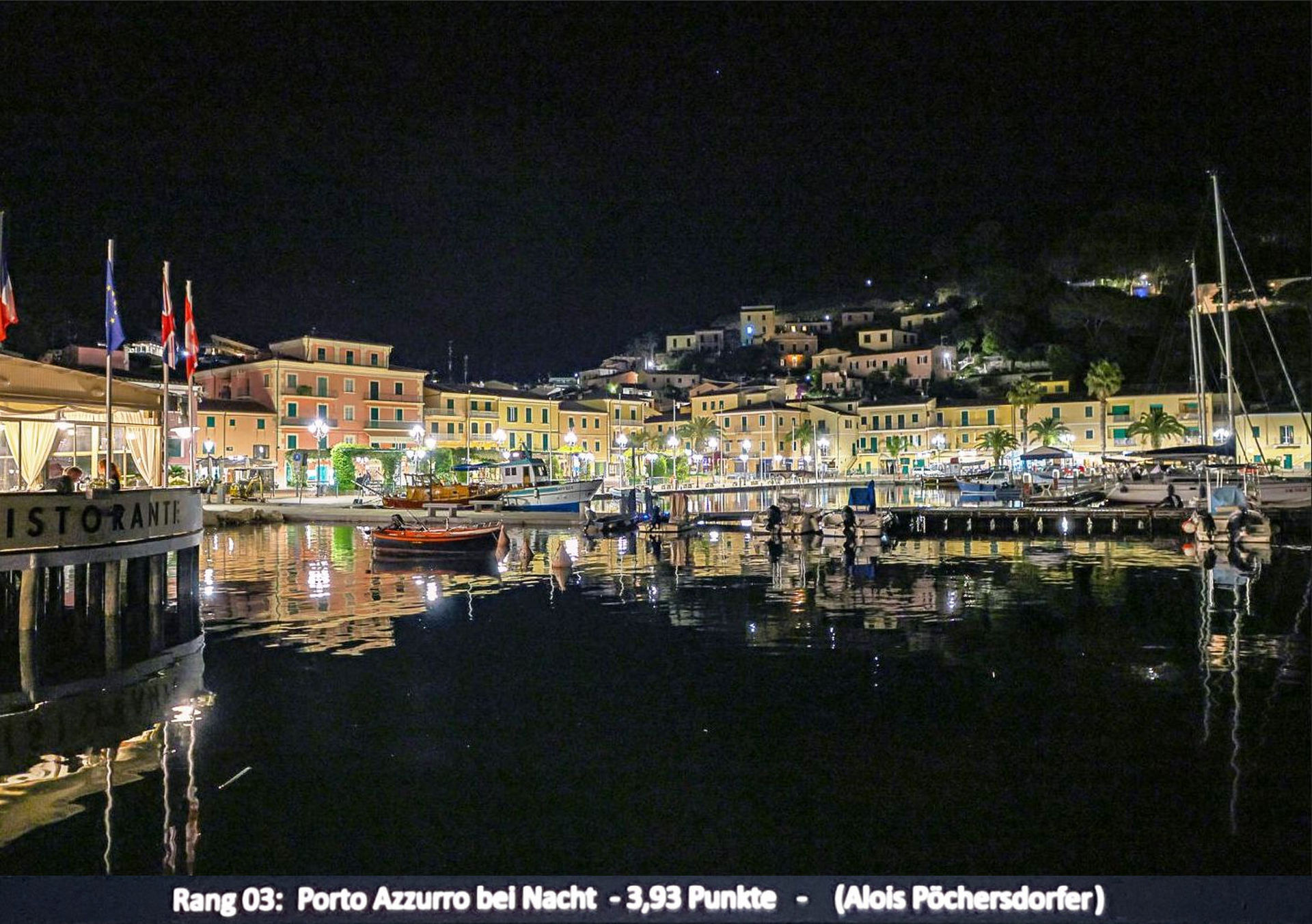 Diesmal hatten es die nächtlichen Aufnahmen den Bewertern angetan. Auch die Plätze 2 und 3 stammen aus dem lichtscheuen Milieu. Manfred Kogler belegte mit „Korsika – Bastia bei Nacht“ Rang 2 und Alois Pöchersdorfer mit „Porto Azzurro bei Nacht“ Rang 3.